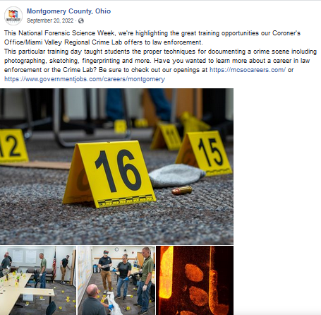 These five posts were part of a Facebook campaign that won “Best in Category – Social Media – Single-Platform Campaign: Forensic Science Week” at the 2023 National Association of County Information Officers’ 2023 Awards of Excellence.